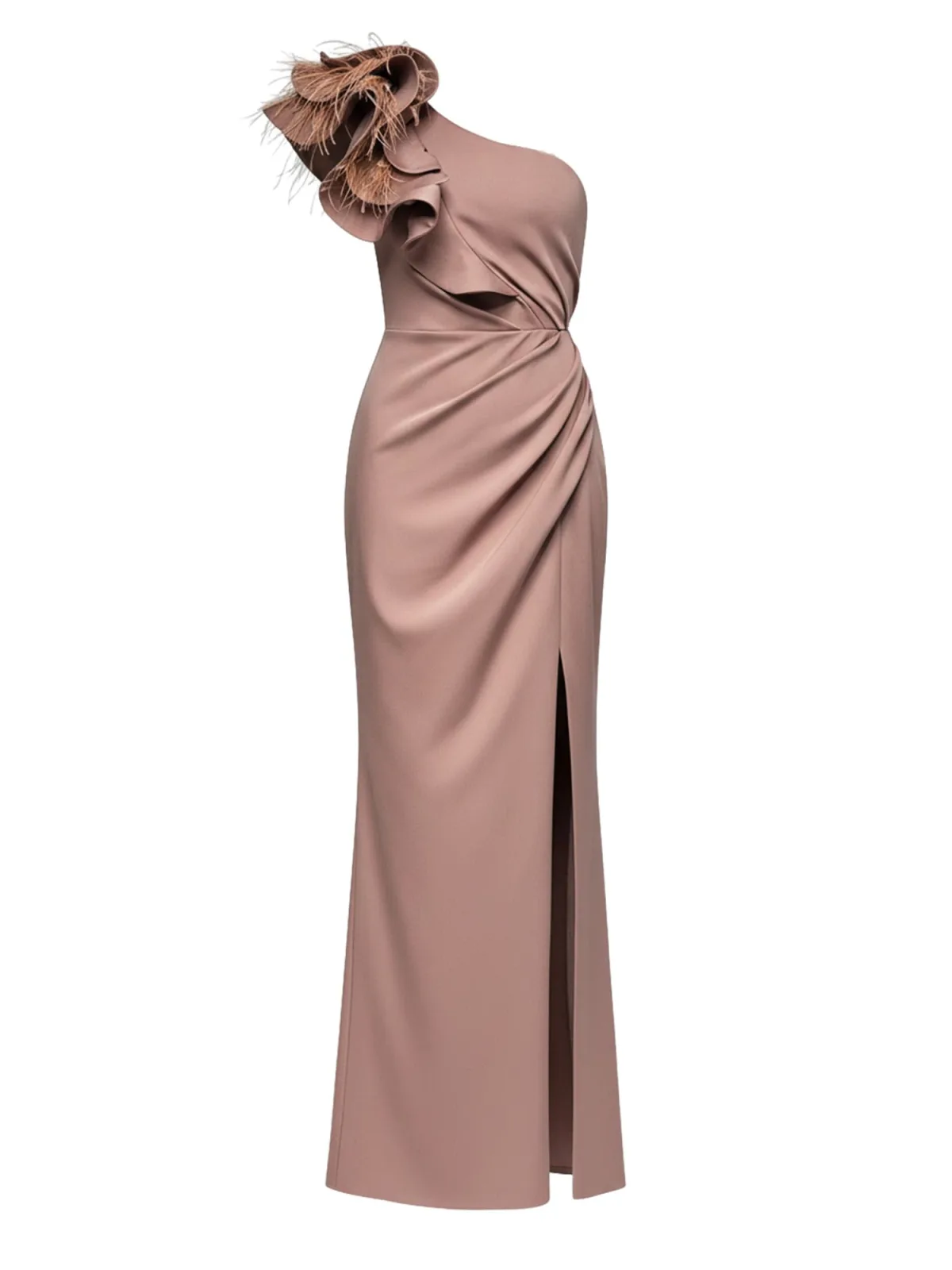 Design: Gevoerde zoom/rand; Motief: Effen; Soort bandjes: One-shoulder; Details: Gedrapeerd; Extra's: Op staal naden; Lengte: Lang/maxi; Pasvorm: Normale pasvorm; Armlengte: Mouwloos