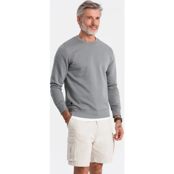 Klassieke grijs beige mannen sweater uit de basiscollectie van het Moda Italia merk Ombre. De trui is gemaakt van zacht, aangenaam aanvoelend materiaal. Past zich perfect aan het figuur aan. Ronde halslijn. Sweatshirts en mouwen afgewerkt met boord. De comfortabele pasvorm maakt het sweatshirt perfect voor dagelijks gebruik. Deze heren trui is goed te combineren op een jeans of chino. Samenstelling: 65% katoen, 35% polyester Pasvorm: Normale fit Merk: Ombre