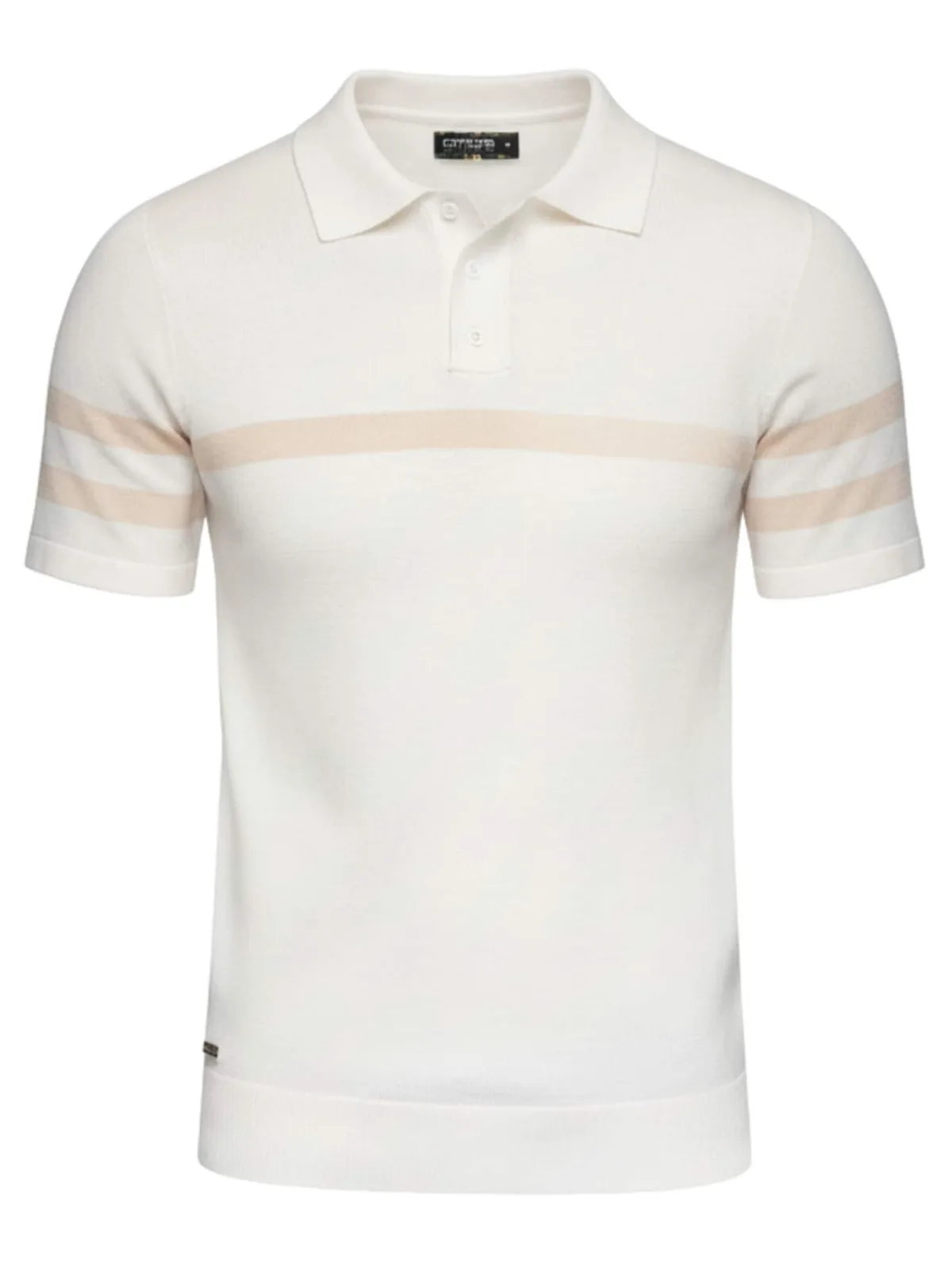 Design: Rechte zoom, Geribd ceintuurtje; Type sluiting: Knoopsluiting; Materiaal: Knitwear; Halstype: Polokraag; Motief: Gestreept; Extra's: Op staal naden; Pasvorm: Normale pasvorm; Armlengte: Kwartmouw; Lengte: Normale lengte