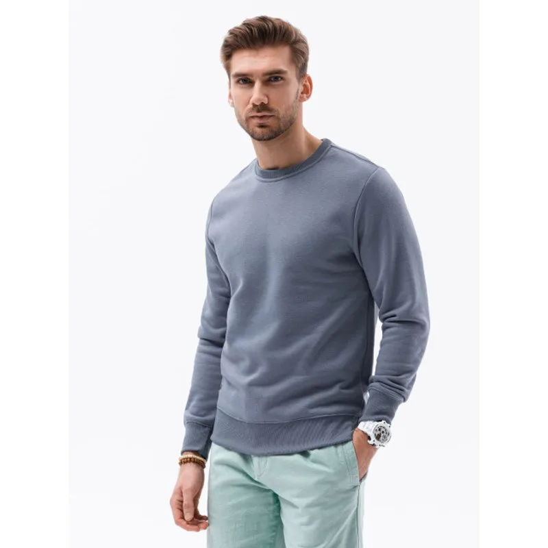 Klassieke mannen sweater uit de basiscollectie van het Moda Italia merk Ombre. De trui is gemaakt van zacht, aangenaam aanvoelend materiaal. Past zich perfect aan het figuur aan. Ronde halslijn. Sweatshirts en mouwen afgewerkt met boord. De comfortabele pasvorm maakt het sweatshirt perfect voor dagelijks gebruik. Deze heren trui is goed te combineren op een jeans of chino. Samenstelling: 65% katoen, 35% polyester Pasvorm: Normale fit Merk: Ombre Kleur: Denim blauw