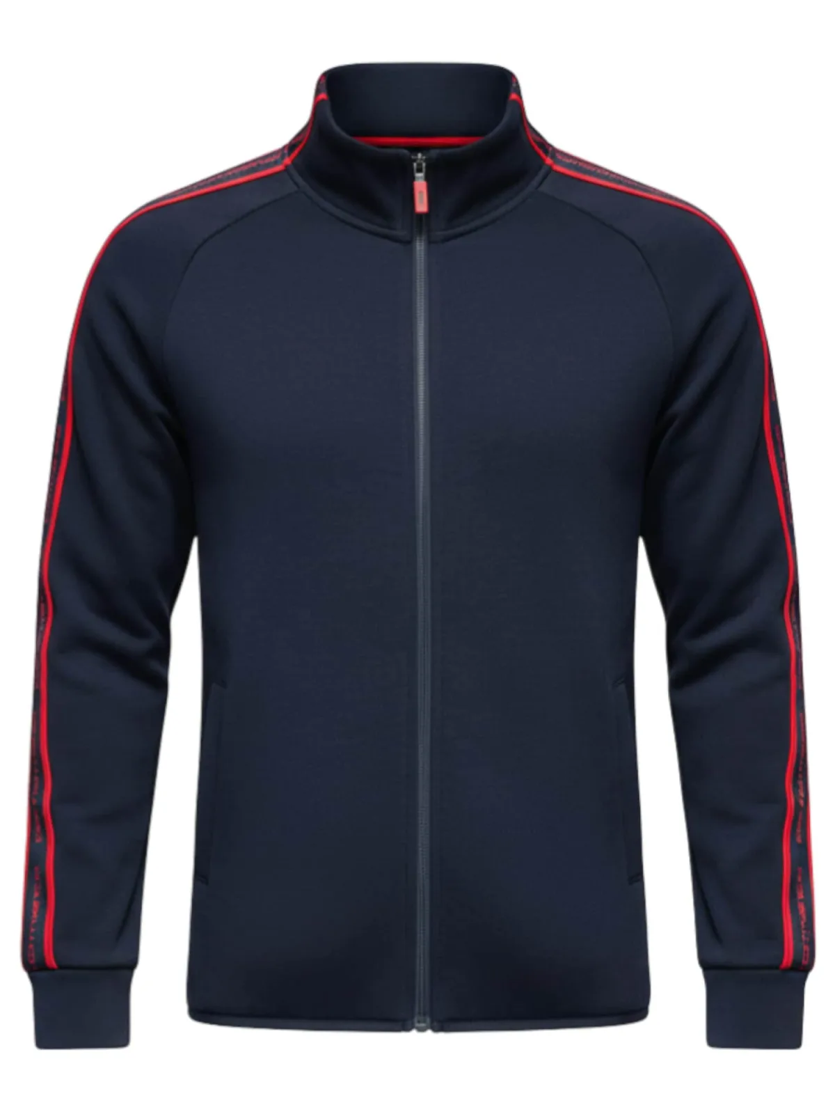 Design: Paspelzak; Type sluiting: Ritssluiting; Materiaal: Sweatstof; Halstype: Col; Motief: Gestreept; Extra's: Op staal naden; Pasvorm: Normale pasvorm; Armlengte: Lange mouw