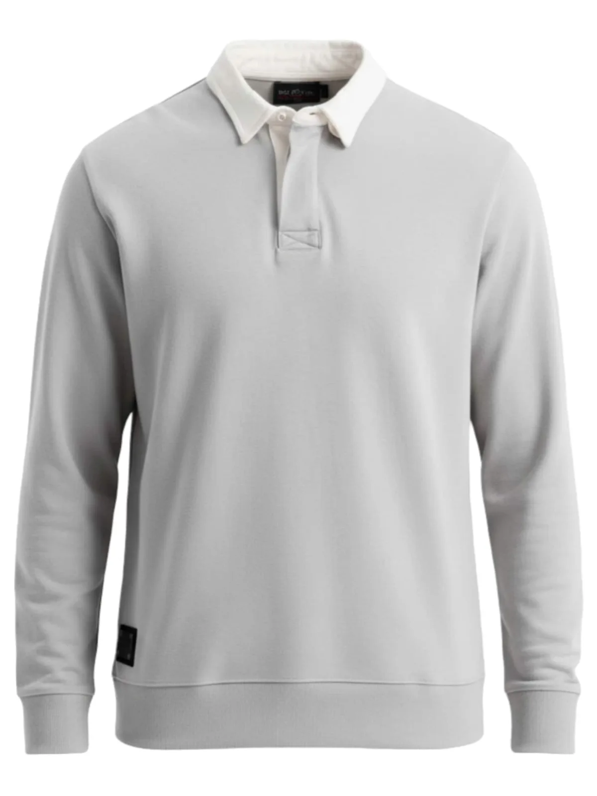 Design: Elastische taille/zoom; Type sluiting: Knoopsluiting; Materiaal: Sweatstof; Halstype: Polokraag; Motief: Effen; Extra's: Label patch/label flag; Pasvorm: Normale pasvorm; Armlengte: Lange mouw