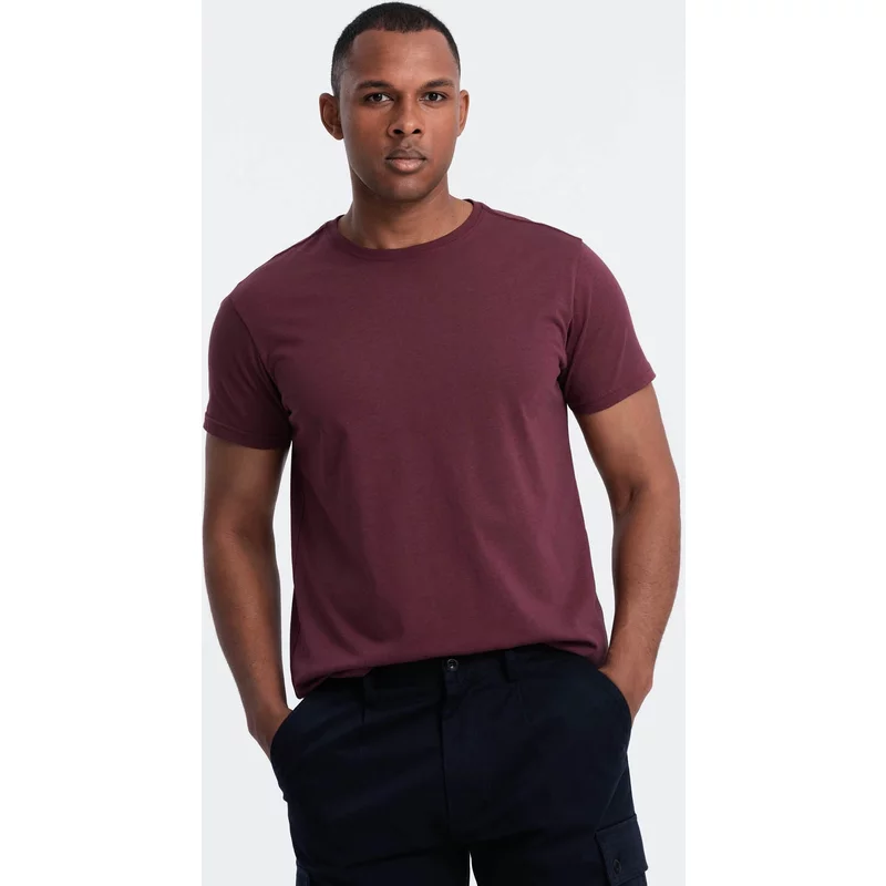 T-shirt heren bordeaux. Het shirt met korte mouw is gemaakt van elastische zachte katoen, dit geeft een aangenaam draaggevoel. Het effen heren T-shirt is perfect om te combineren met een korte heren broek of een jeans. Pasvorm: Normal Fit Materiaal: 100% Katoen Kleur: Bordeauxrood Categorie: Zomer Sluiting: Ronde hals Patroon: Effen Het model presenteert het product in maat: M