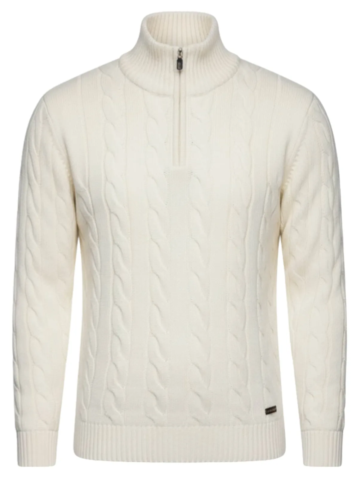 Design: Geribd ceintuurtje, Staande kraag, Vlecht brei, Halve rits; Type sluiting: Ritssluiting; Materiaal: Katoen; Halstype: Schipperskraag; Motief: Effen; Extra's: Op staal naden; Pasvorm: Normale pasvorm; Armlengte: Lange mouw