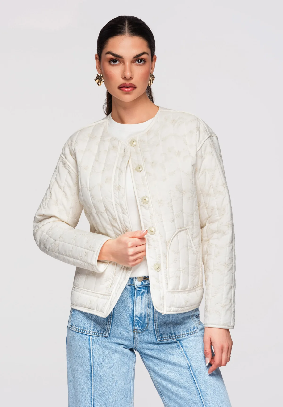 Design: Knop placket, Overcut schouder, Opgezette zakken; Type sluiting: Knoopsluiting; Type jas: Gewatteerde jas; Voering: Niet gevoerd; Materiaal: Katoen; Motief: Bloemenprint; Extra's: All-over patroon, Stiksels, Voelt zacht aan; Pasvorm: Normale pasvorm
