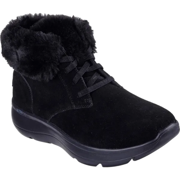 Laid-back stijl en comfort worden gecombineerd in de Skechers On-the-GO Joy Cozy Haven. Deze pull-on laars voor koud weer heeft een met Scotchgard behandeld suède bovenwerk met een kraag van imitatiebont, elastische veters, een luchtgekoelde Goga Mat binnenzool en lichtgewicht 5GEN demping.