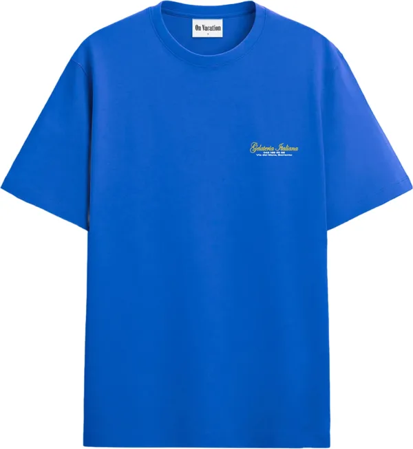 T-shirt van On Vacation met casual pasvorm, ronde hals en korte mouwen. Het logo op de borst en de grote Dolce Vita gelato print op de rug geven een opvallend accent. Draag met een jeans of chino voor een relaxte, verzorgde outfit.