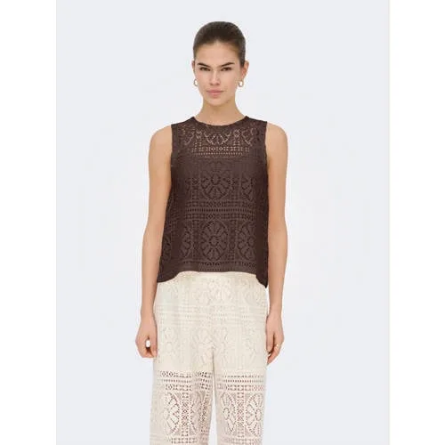 Deze bruine dames top met broderie van ONLY is een lichte keuze voor dagelijks gebruik. De top is mouwloos, heeft een ronde hals en een all over bloemenprint die direct opvalt. Door de broderie details krijgt het ontwerp een rustige look die goed past bij het voorjaar en milde dagen. Het soepele materiaal valt recht langs het lichaam en voelt zacht aan op de huid.Verfijnde details voor elke dag Mouwloze top met ronde hals voor een open, luchtige look Broderie details voor een verfijnde structuur All over bloemenprint in een bruine kleurtoon Valt normaal volgens het maatadvies Geen zakken voor een glad, clean silhouet Onderdeel van de 'Daily' collectie, ideaal voor alledaagse outfits Lauw strijkbaar (1 punt) en wasbaar op 30 graden Niet drogen in de droogtrommel om de vorm en details goed te houdenGemakkelijk te combineren in jouw garderobeDeze top is geschikt voor uiteenlopende momenten, van een werkdag tot een ontspannen middag buiten. Draag de top in een jeans of een rechte broek voor een eenvoudige outfit, of combineer met een rok voor een meer geklede uitstraling. Door de bruine kleur laat de top zich goed combineren met lichte en donkere tinten.ONLY als betrouwbare stijlbasisONLY biedt toegankelijke mode die aansluit op het dagelijks leven. De collecties volgen de trends, maar blijven draagbaar en praktisch. Met deze top kies je voor een item dat past binnen een moderne garderobe en makkelijk te stylen is met andere favorieten in je kast.Een luchtige basis die je eenvoudig vaak draagt.