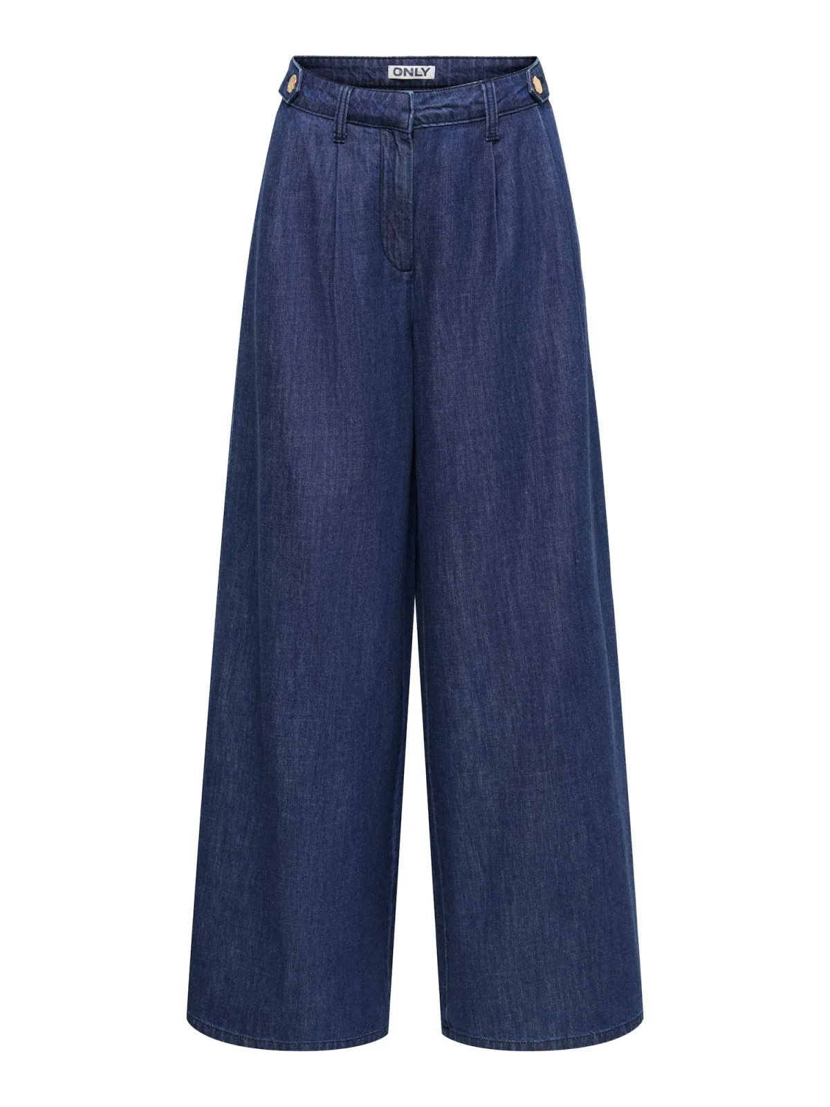 Design: Ritssluiting, Zakken aan de zijkant; Type sluiting: Knoopsluiting; Materiaal: Denim; Motief: Effen; Details: Plooien; Extra's: Riemlussen; Wassing: Rinsed/dark washed; Lengte: Lang/maxi; Pasvorm: Wide leg; Taillehoogte: High waist