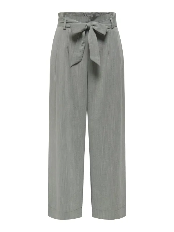 Dames bandplooibroek van Only;Model 'Marsa';look: effen;Pasvorm: regular fit;Taillehoogte: high waist;Details: bandplooien, ruches, riemlussen;sluiting: strikceintuur;Materiaal: viscosemix