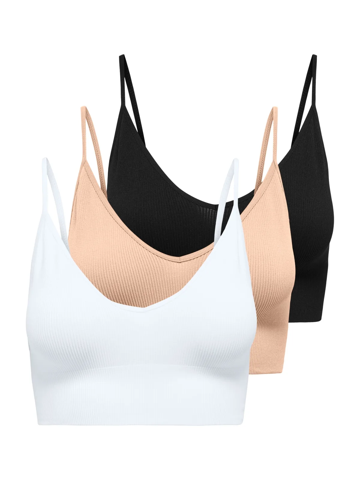 Cup soorten: Soft cup bh; Soort bandjes: Normale bandjes; Bh/bikini type: Bustier; Beugel: Zonder beugel; Design: Rechte zoom, Geribbeld gebreid; Materiaal: Jersey; Motief: Effen; Extra's: Op staal naden, Voelt zacht aan; Aantal: 3 Pack