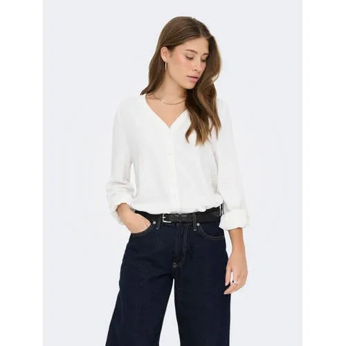 De ONLY blouse Onljana Mette V-neck is een praktische basis voor elke dag. De regular fit en soepel geweven stof geven een ontspannen uitstraling, terwijl de V-hals en knoopsluiting het ontwerp verzorgd afwerken. Door de effen kleur laat deze blouse zich gemakkelijk combineren met je favoriete jeans, nette pantalon of rok.Verzorgde details voor dagelijks draaggemak Regular fit: valt recht langs het lichaam voor een comfortabele pasvorm Gemaakt van 100% polyester: voelt licht aan en blijft gemakkelijk in model Geweven kwaliteit: geeft de blouse een gladde, verzorgde look V-hals met knoopsluiting: geschikt voor verschillende gelegenheden Lange, rechte mouwen: passend voor zowel kantoor als casual momenten Effen kleur zonder zakken: rustig beeld, goed te combineren met opvallende accessoires Maatadvies: dit artikel valt normaalVan werkdag tot weekendOp zoek naar een blouse die in meerdere outfits past? Deze Onljana Mette draag je net zo makkelijk in een zakelijke look als op een ontspannen dag. In de broek, op een high waist jeans of half ingestopt voor een losse, actuele stijl, de effen kleur vormt steeds een rustige basis.ONLY, vertrouwd in alledaagse modeONLY staat voor toegankelijke kleding met actuele pasvormen en herkenbare basics. De collecties sluiten aan op het dagelijks leven, met items die je vaak en lang kunt dragen. Zo voeg je met deze blouse een vast onderdeel toe aan je garderobe.Een blouse die je garderobe helder en overzichtelijk houdt.