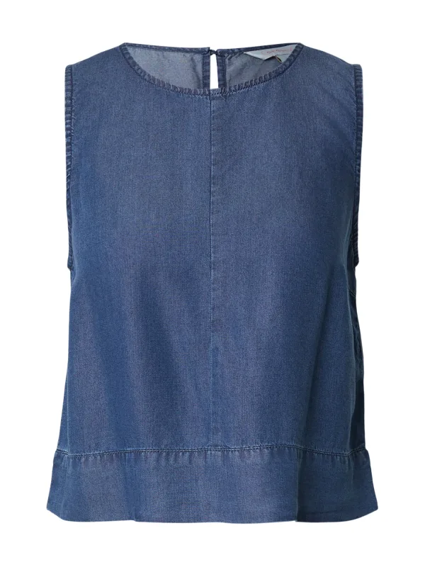 Blouse type: Blouseshirt; Design: Figuurnaden, Keyholesluiting; Type sluiting: Knoopsluiting; Materiaal: Lyocell; Motief: Effen; Kraag: Zonder kraag; Details: Cut-outs; Extra's: Op staal naden, Gewassen effect, Gladde stof; Pasvorm: Normale pasvorm; Armlengte: Mouwloos; Lengte: Korte pasvorm