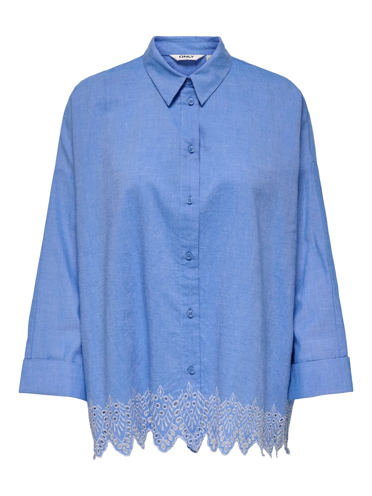 Blouse type: Klassieke blouse; Design: Overcut schouder, Geschulpte zoom; Type sluiting: Knoopsluiting; Materiaal: Katoen; Motief: Effen; Kraag: Kentkraag; Details: Borduursels, Mesh; Extra's: Voelt zacht aan, Huidvriendelijk materiaal; Pasvorm: Losse pasvorm; Armlengte: Lange mouw; Lengte: Normale lengte