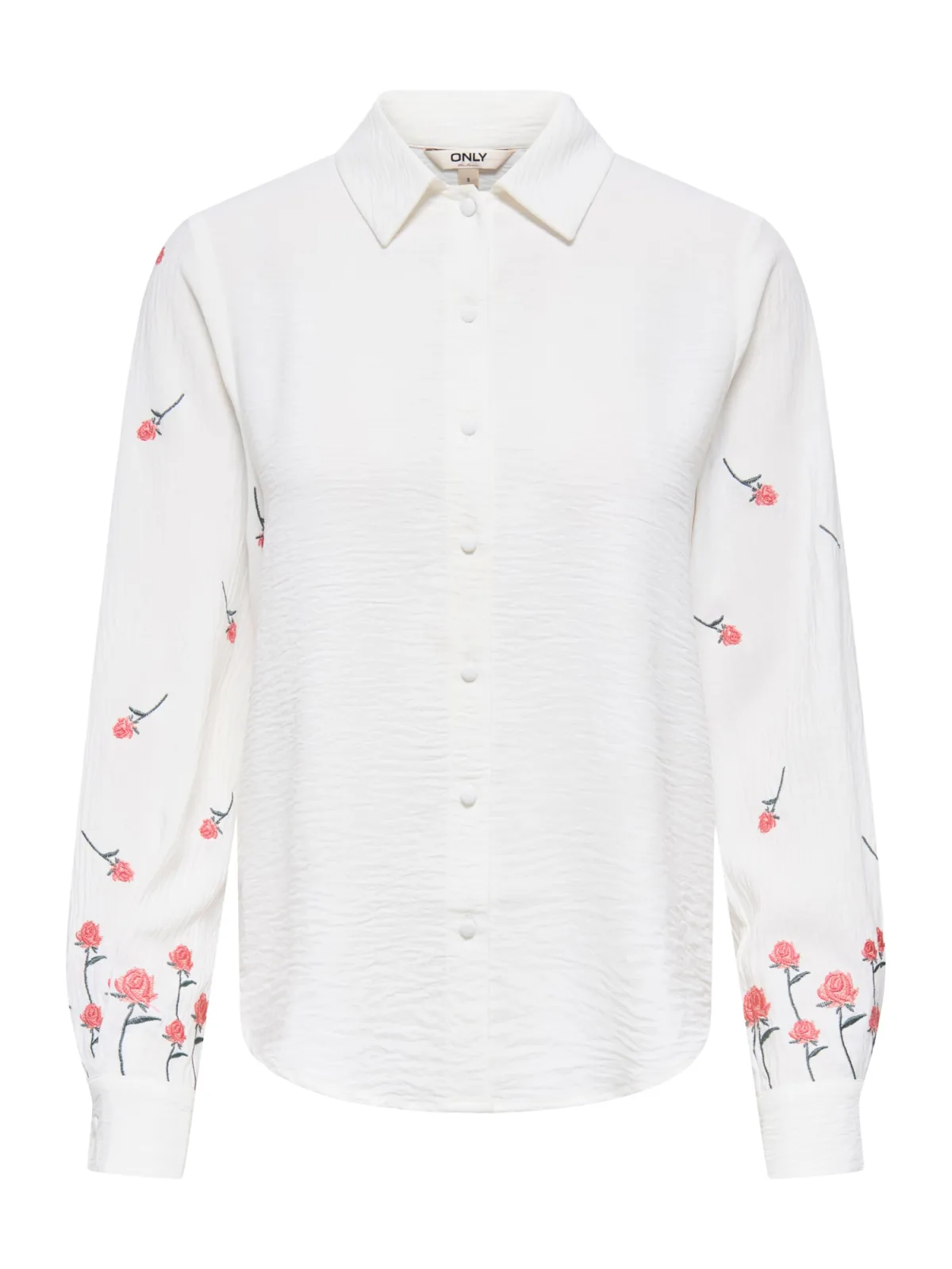 Blouse type: Klassieke blouse; Design: Gevoerde zoom/rand, Placket, Turn-down kraag; Type sluiting: Knoopsluiting; Materiaal: Gerecycled materiaal; Motief: Bloemenprint; Kraag: Kentkraag; Details: Borduursels, Plooien; Extra's: Voelt zacht aan, Milieuvriendelijk geproduceerd; Pasvorm: Normale pasvorm; Armlengte: Lange mouw; Lengte: Normale lengte