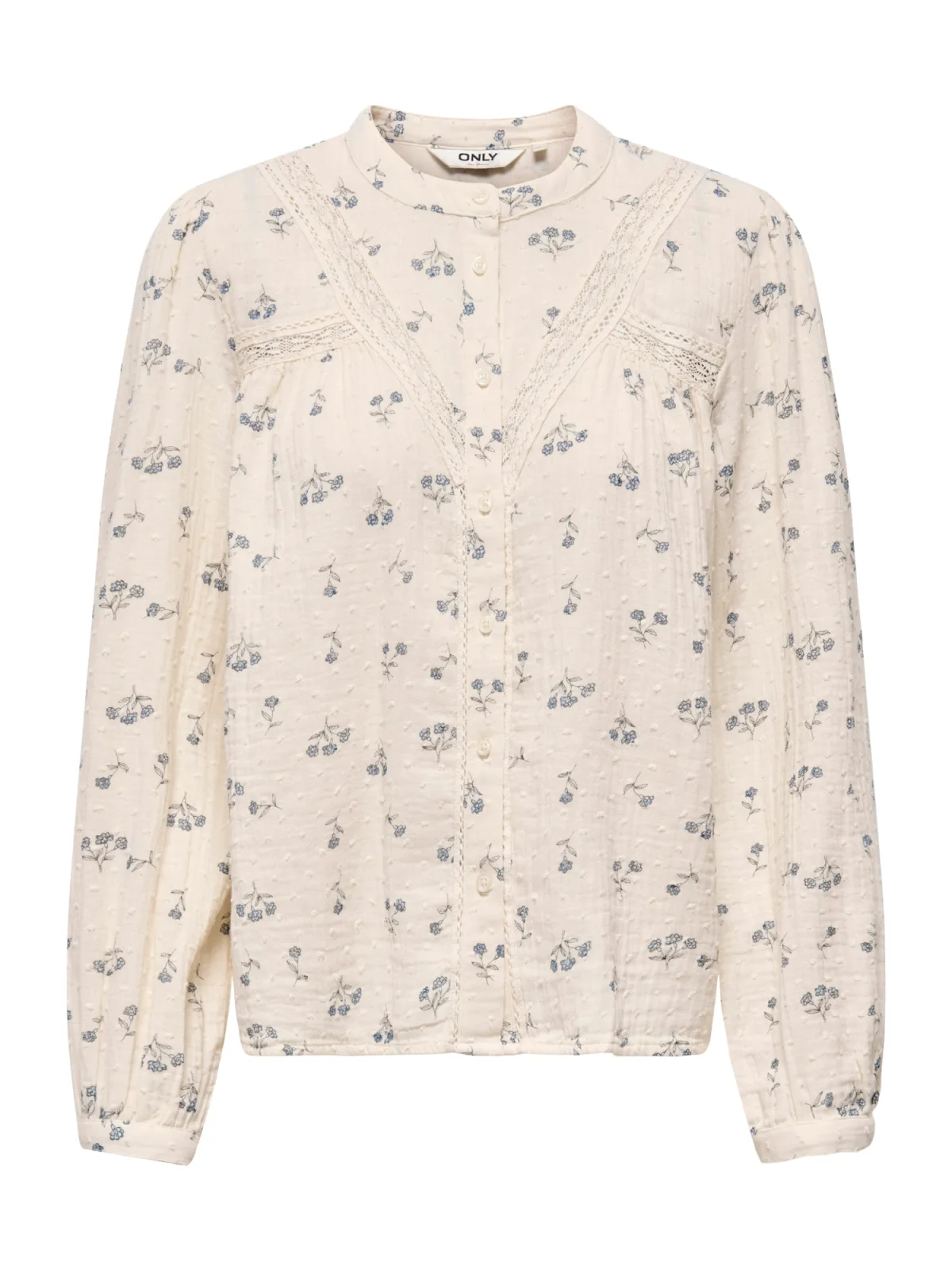 Blouse type: Klassieke blouse; Design: Gevoerde zoom/rand, Placket; Type sluiting: Knoopsluiting; Materiaal: Mousseline; Motief: Bloemenprint; Kraag: Opstaande kraag; Details: Kant, Gedrapeerd; Extra's: All-over patroon, Voelt zacht aan; Pasvorm: Losse pasvorm; Armlengte: Lange mouw; Lengte: Normale lengte