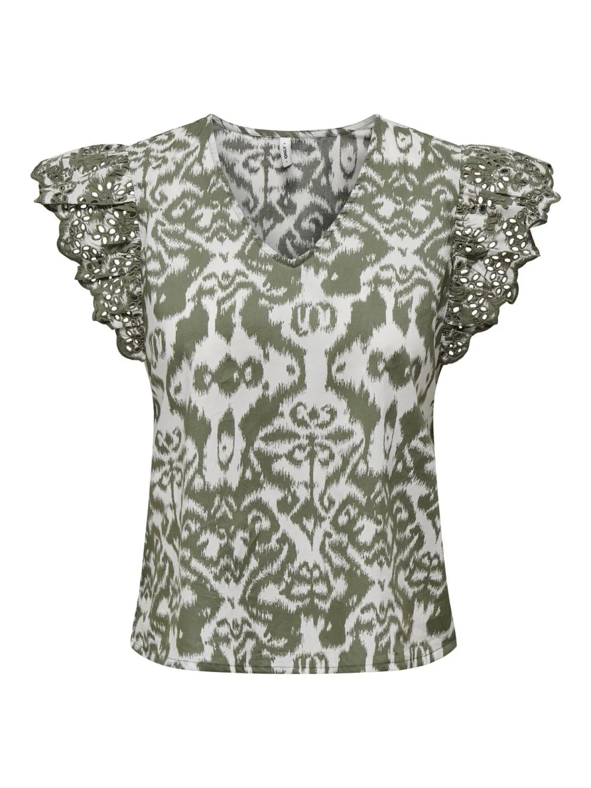 ONLY Blouse ‘ONLLou’ olijfgroen / wit