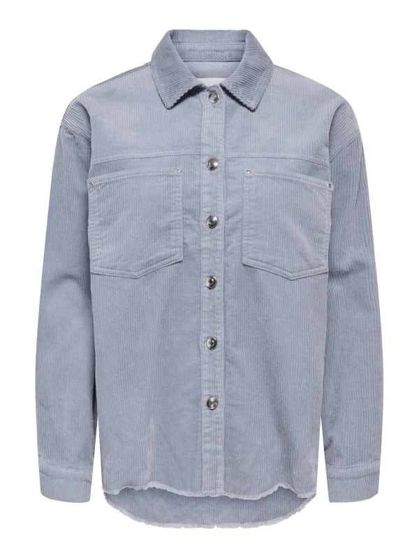Dames overhemdjack van Only;Model 'Maiko-Bitten';Look: effen;Pasvorm: Regular Fit;Kraagmodel: Platte kraag;Sluiting: enkelvoudige knoopsluiting;Applicatie: Met studs;Mouwvorm: lange mouw;Mouwboord: Manchet;Rompzoom: licht afgerond, open rand;Zakken: Borstzak;Materiaalverwerking: Corduroy;Materiaal: puur katoen