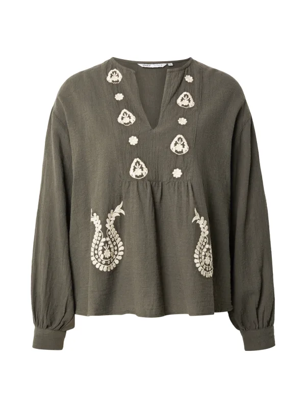 ONLY Blouse ‘ONLMoon’ crème / olijfgroen