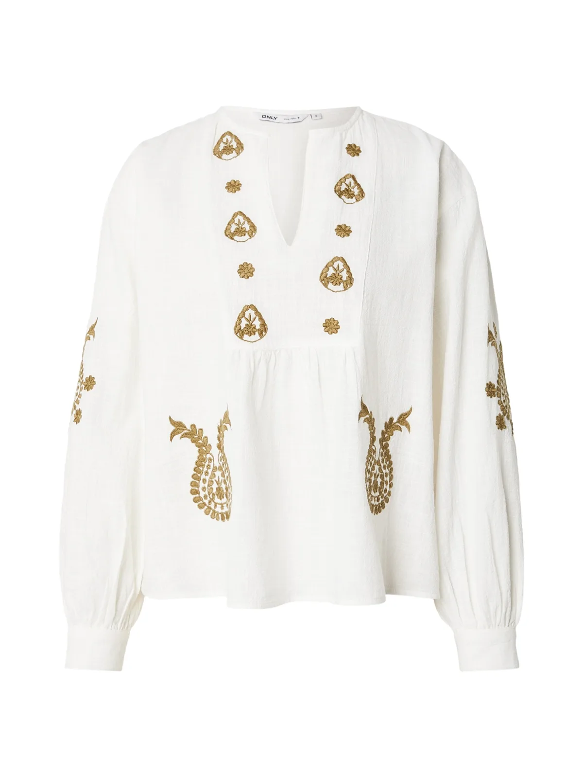 Blouse type: Blouseshirt; Design: Gevoerde zoom/rand, Overcut schouder; Materiaal: Katoen; Motief: Aztec print; Kraag: Tuniek kraag; Details: Borduursels, Gedrapeerd; Extra's: Op staal naden, Gladde stof; Pasvorm: Normale pasvorm; Armlengte: Lange mouw; Lengte: Normale lengte