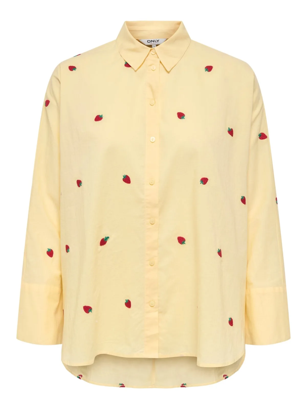 Blouse type: Klassieke blouse; Design: Rugnaad, Turn-down kraag, Verlengd rugpand; Type sluiting: Knoopsluiting; Materiaal: Katoen; Kraag: Kentkraag; Details: Borduursels; Extra's: All-over patroon, Applicaties; Pasvorm: Losse pasvorm; Armlengte: Lange mouw; Lengte: Normale lengte
