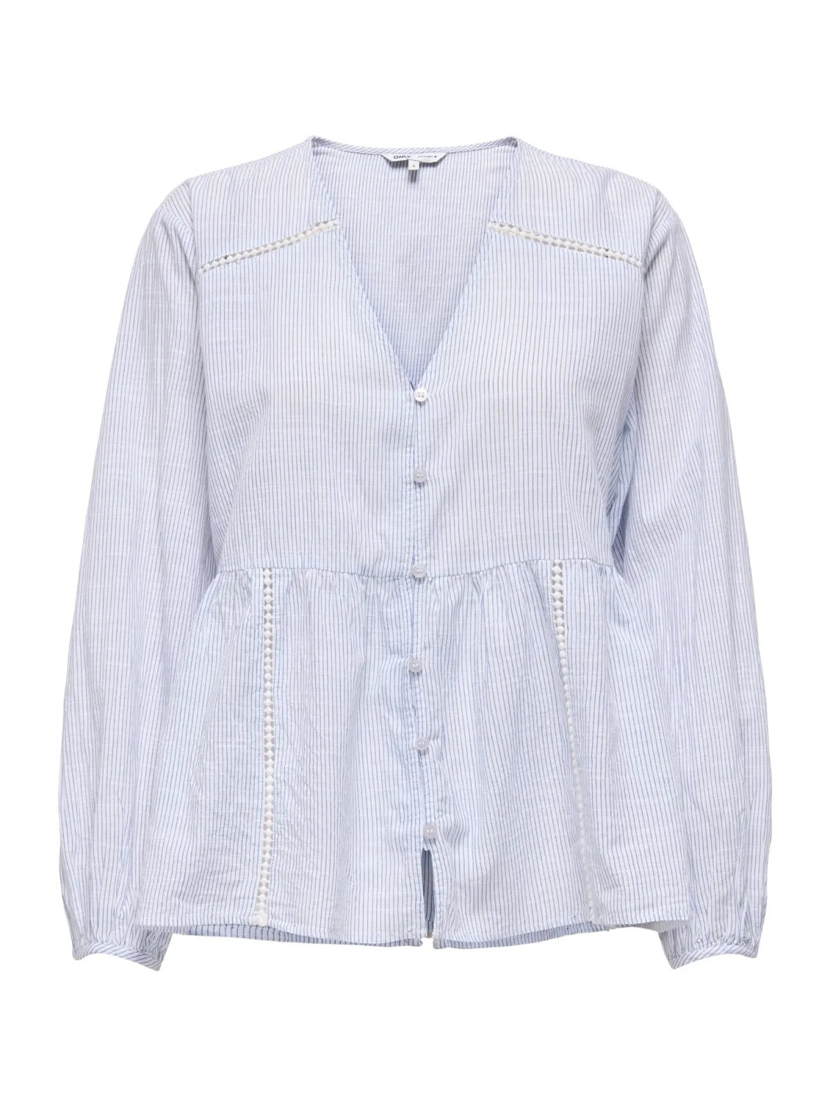 Dames langarmblouse van Only;Model 'Nora';Look: effen, Tweekleurig;Pasvorm: Relaxed Fit;Kraagvorm: tuniek;Patroon: gestreept;Applicatie: Labelstikken;Details: Plooien;Hals: diepe V-hals;Sluiting: enkelvoudige knoopsluiting;Mouwvorm: lange mouw;Mouwboord: Split met knoopsluiting;Zoom: uitlopend;Materiaalverwerking: Geweven textiel;Materiaal: puur katoen