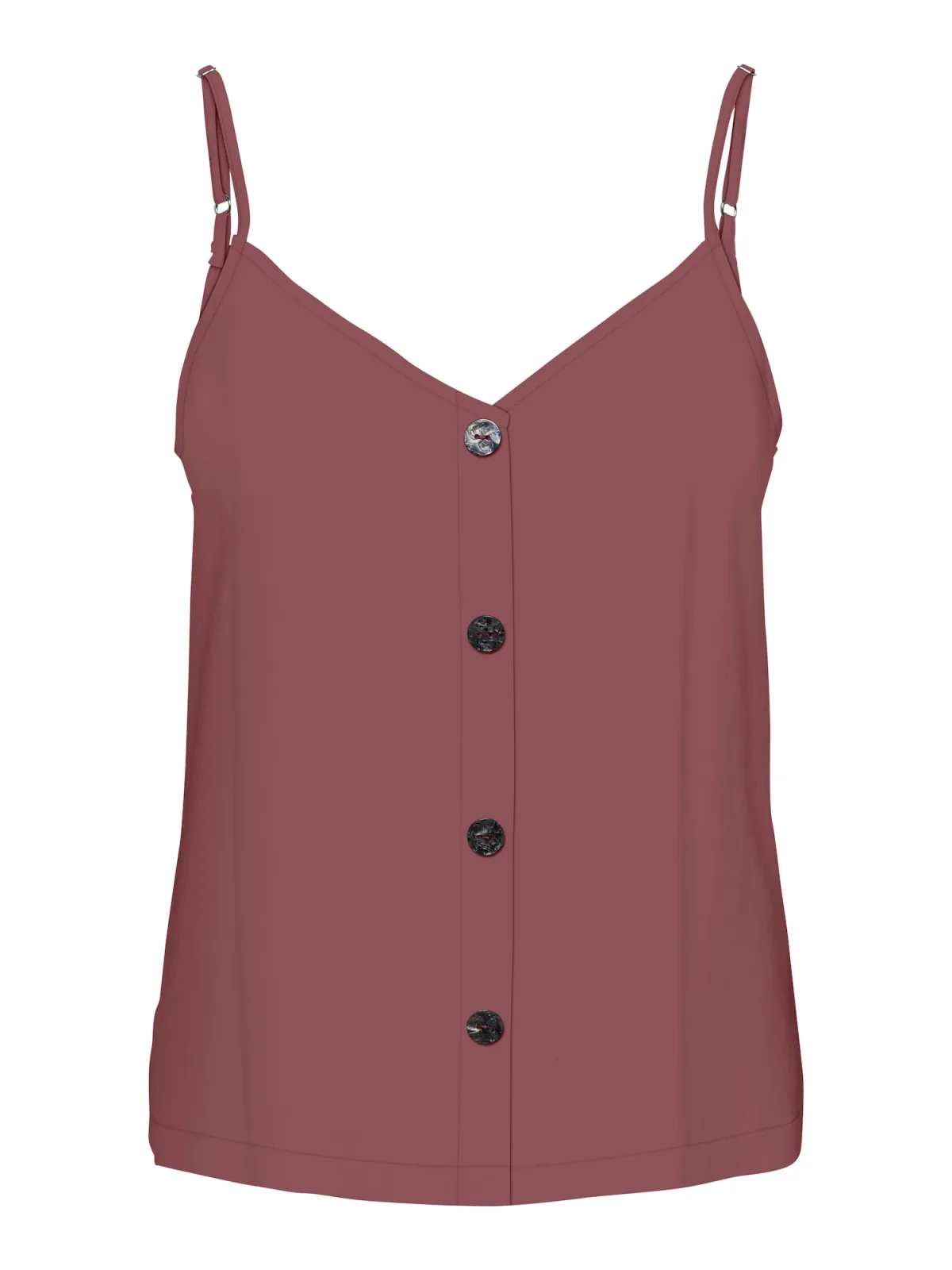 Blouse type: Klassieke blouse; Design: Gevoerde zoom/rand, Rechte zoom, Knop placket; Type sluiting: Knoopsluiting; Materiaal: Viscose; Halstype: V-hals; Motief: Effen; Kraag: Zonder kraag; Soort bandjes: Spaghettibandjes; Extra's: Verstelbare bandjes, Op staal naden, Gladde stof; Pasvorm: Normale pasvorm; Armlengte: Mouwloos; Lengte: Normale lengte