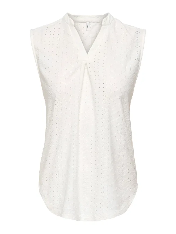 dames blousetop van Only;Model 'Sandra';look: effen;Pasvorm: regular fit;Patroon: structuur;Details: Details:;hals: Henley;mouwvorm: zonder mouwen;rompzoom: afgerond