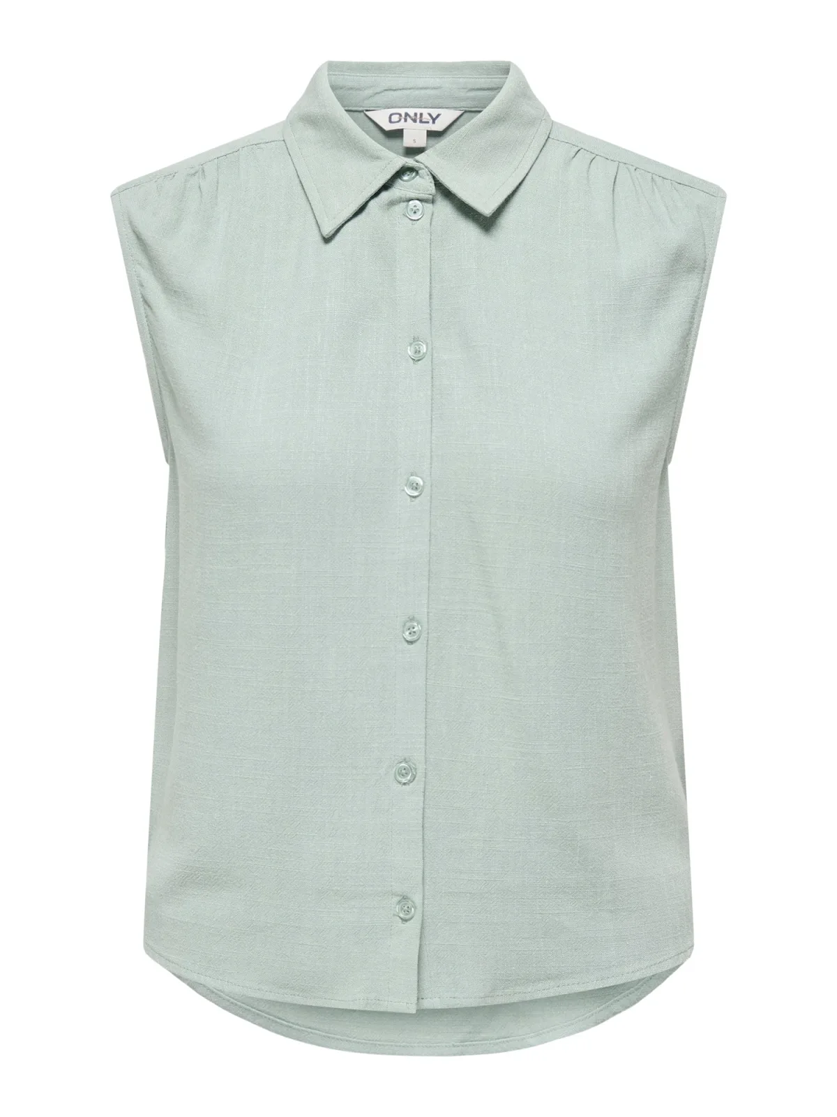 dames linnen blouse van Only;Model 'Siesta';look: mêlee;Pasvorm: regular fit;kraagmodel: overhemdkraag;Applicatie: plooien;Sluiting: enkelrijige knoopsluiting;mouwvorm: zonder mouwen;Materiaal: mix van viscose en linnen