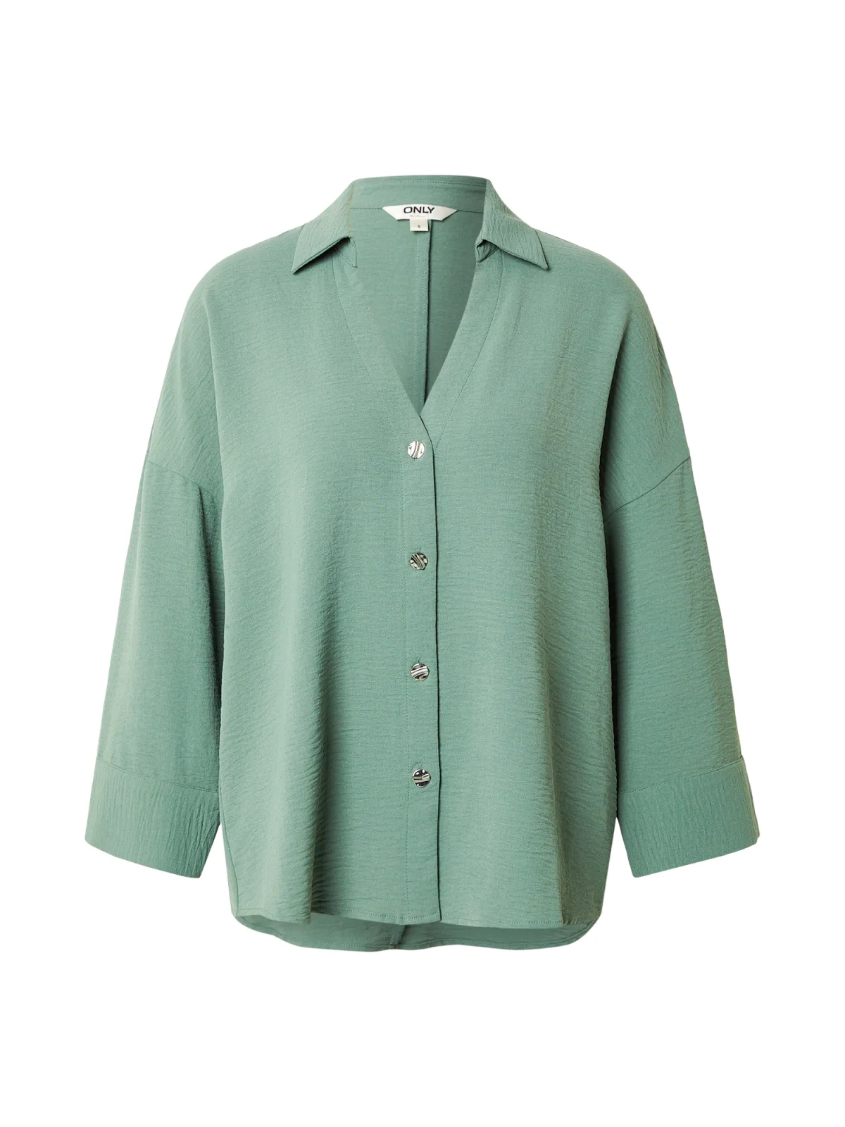 Blouse type: Klassieke blouse; Design: Gevoerde zoom/rand, Knop placket, Ronde zoom, Turn-down kraag; Type sluiting: Knoopsluiting; Materiaal: Gerecycled materiaal; Motief: Effen; Extra's: Gladde stof, Lichte stof; Pasvorm: Losse pasvorm; Armlengte: Driekwart mouw; Lengte: Normale lengte