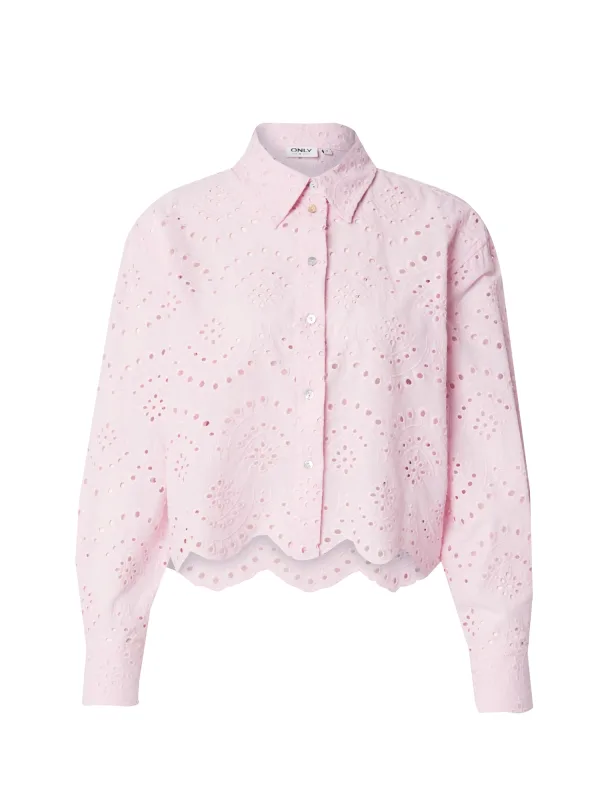 dames overhemdblouse van Only;Model 'Valais';Look: effen,;Pasvorm: regular fit;kraagmodel: overhemdkraag;Details: ajourwerk;Sluiting: enkelrijige knoopsluiting;Mouwvorm: lange mouw;mouwboord: manchet;rompzoom: geschulpte zoom;materiaalverwerking: popeline;Materiaal: puur katoen