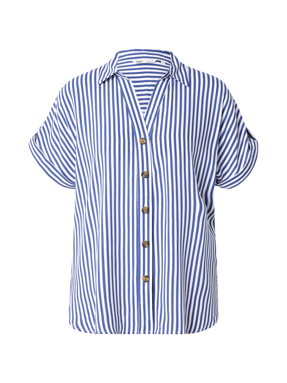 deze ONLYASMIN blouse van ONLY heeft korte mouwen en een klassieke kraag gemaakt van 100% viscose met deze regular fit blouse maak je jouw outfit makkelijk compleet door de knoopsluiting aan de voorkant
