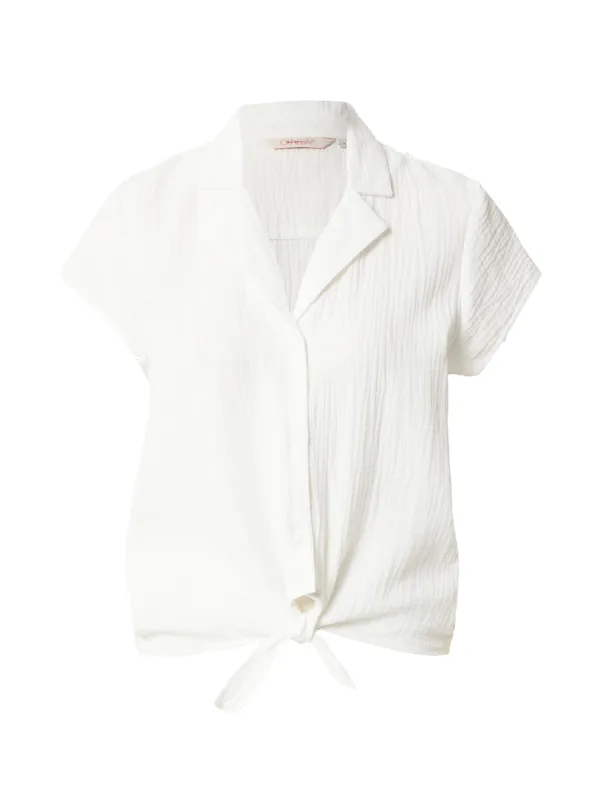 Blouse type: Klassieke blouse; Design: Gevoerde zoom/rand, Revers kraag, Om te knopen/binden; Type sluiting: Knoopsluiting; Materiaal: Mousseline; Motief: Effen; Extra's: Buigzame grip; Pasvorm: Losse pasvorm; Armlengte: Kwartmouw; Lengte: Korte pasvorm
