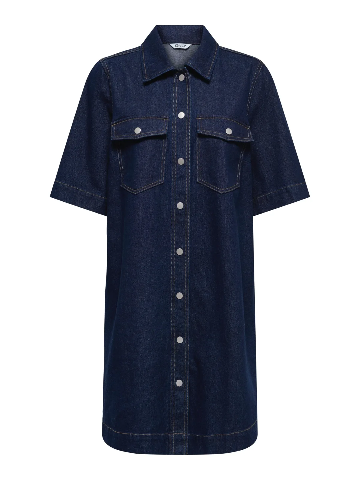 Design: Gevoerde zoom/rand, Borstzak; Type sluiting: Knoopsluiting; Materiaal: Denim; Halstype: Polokraag; Motief: Effen; Kraag: Kentkraag; Extra's: Contrasterende naden, Gewassen effect; Lengte: Knielengte; Snit: Recht; Pasvorm: Losse pasvorm; Armlengte: Halve mouw