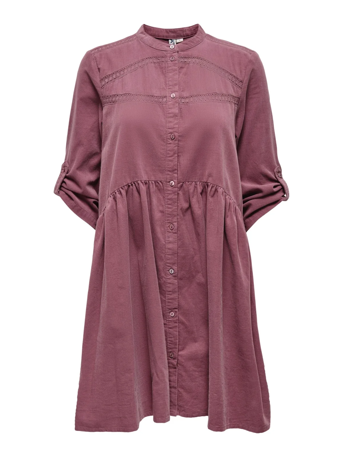 Design: Gevoerde zoom/rand, Knop placket, Roll-up mouwen; Type sluiting: Knoopsluiting; Materiaal: Corduroy; Motief: Effen; Kraag: Opstaande kraag; Details: Kant, Volant, Gedrapeerd; Extra's: Op staal naden, Voelt zacht aan; Lengte: Knielengte; Snit: Uitlopend; Pasvorm: Normale pasvorm; Armlengte: Driekwart mouw