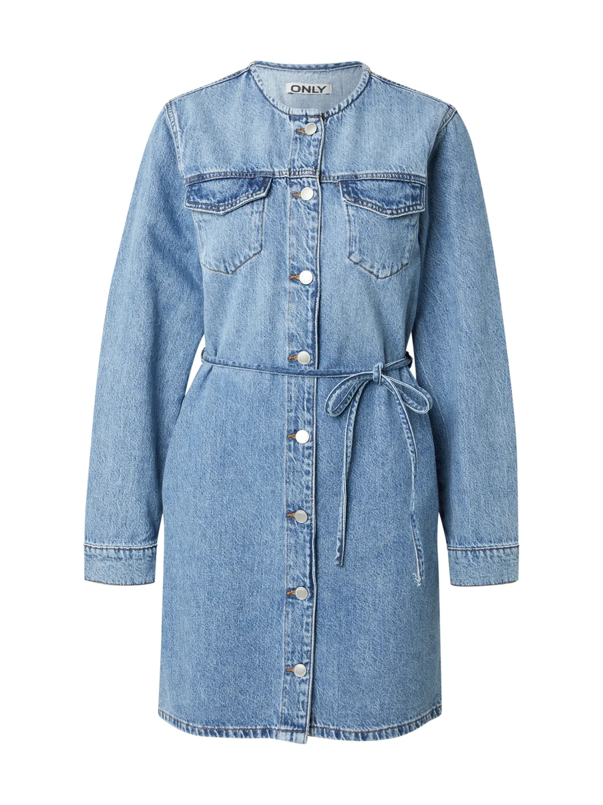 Design: Gevoerde zoom/rand, Knop placket, Borstzak; Type sluiting: Knoopsluiting; Materiaal: Denim; Halstype: Ronde hals; Motief: Effen; Kraag: Zonder kraag; Extra’s: Gewassen effect, Vaste grip, Riemlussen; Lengte: Kort/mini; Snit: Getailleerd; Pasvorm: Normale pasvorm; Armlengte: Lange mouw
