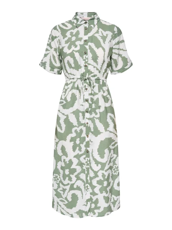 Specificaties: ONLY Blousejurk ‘ONLPERI’ donkergroen / wit
