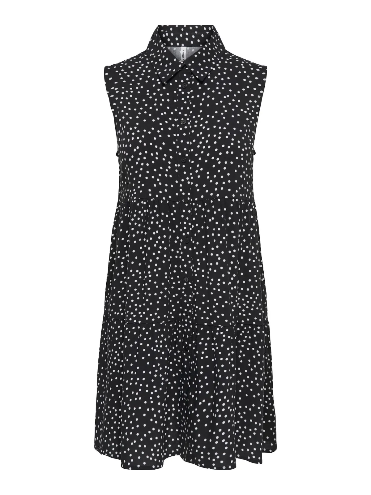 Design: Gevoerde zoom/rand, Knop placket; Type sluiting: Knoopsluiting; Materiaal: Viscose; Kraag: Kentkraag; Details: Volant, Gedrapeerd; Extra's: All-over patroon, Gladde stof; Lengte: Kort/mini; Snit: Uitlopend; Pasvorm: Normale pasvorm; Armlengte: Mouwloos