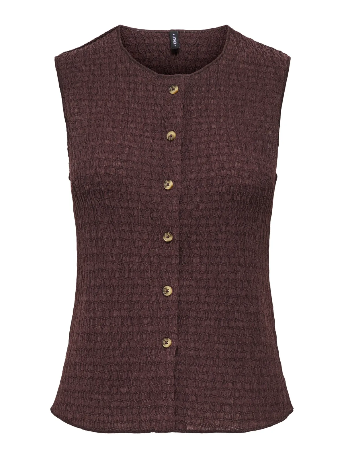 Design: Rechte zoom, Knop placket; Type sluiting: Knoopsluiting; Voering: Niet gevoerd; Materiaal: Gerecycled materiaal; Halstype: Ronde hals; Motief: Effen; Extra's: Op staal naden, Met textuur; Pasvorm: Normale pasvorm; Armlengte: Mouwloos; Lengte: Normale lengte