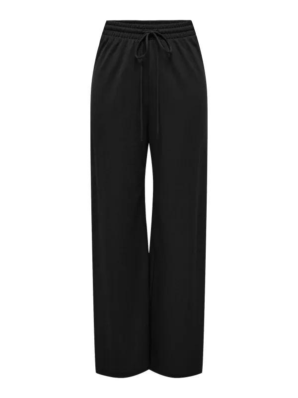 Design: Gevoerde zoom/rand, Taille met trekkoord; Materiaal: Jersey; Motief: Effen; Details: Gedrapeerd; Extra's: Op staal naden, Gladde stof; Lengte: Lang/maxi; Pasvorm: Wide leg; Taillehoogte: High waist