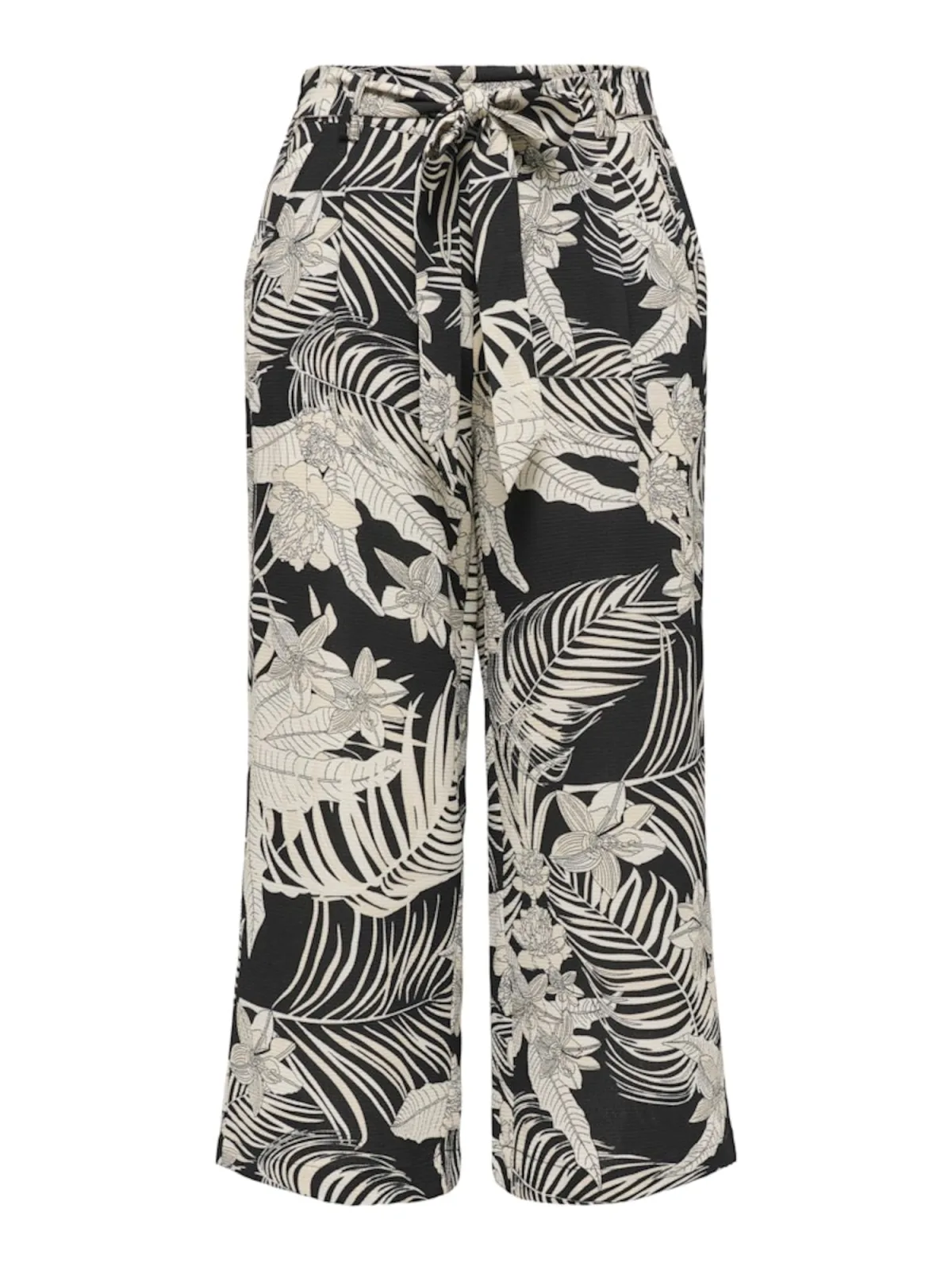 Design: Elastische taille/zoom, Tailleband, Zakken aan de zijkant; Materiaal: Gerecycled materiaal; Motief: Bloemenprint; Details: Plooien; Extra's: All-over patroon, Lichte stof, Riemlussen; Lengte: 3/4 lengte; Pasvorm: Wide leg; Taillehoogte: High waist