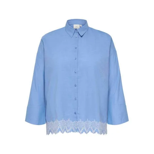 Deze lichtblauwe katoenen blouse met broderie van ONLY CARMAKOMA is een frisse basic voor elke dag. Het luchtige, geweven katoen voelt comfortabel aan en de rechte pasvorm valt relaxed langs het lichaam. De klassieke kraag en knoopsluiting geven een rustige, verzorgde uitstraling, terwijl de broderiedetails zorgen voor een subtiel speels effect.Verfijnde details voor alledag Gemaakt van 100% katoen voor een zachte touch op de huid Lichtblauwe effen kleur die eenvoudig te combineren is Broderie en geweven structuur voor een verfijnde, vrouwelijke look Driekwart, wijde mouwen voor extra bewegingsvrijheid en luchtigheid Klassieke kraag en volledige knoopsluiting aan de voorkant Rechtvallende pasvorm, geschikt voor grotere maten Onderdeel van de Daily collectie, ideaal voor dagelijks dragen Zonder zakken voor een rustige en strakke uitstraling Maatadvies: dit artikel valt normaal Onderhoud: handwas, niet strijken en niet in de droogtrommel drogenLichte blouse voor het lenteseizoenDe Cargraces Tulum blouse is een fijne keuze voor de lente. De driekwartmouwen en het luchtige katoen maken het een prettig bovenstuk voor milde dagen. Draag de blouse op een rechte jeans of een lichte broek voor een rustige, dagelijkse outfit.ONLY CARMAKOMA: stijl in grotere matenONLY CARMAKOMA richt zich op dames die graag modieuze items dragen in grotere maten. De collecties sluiten aan bij de trends van nu, met aandacht voor een prettige pasvorm en comfortabele materialen. Zo combineert dit merk actuele stijlen met praktische details voor elke dag.Een lichte, doordachte blouse die je garderobe op een rustige manier aanvult.