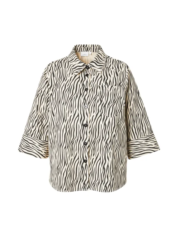 Blouse type: Klassieke blouse; Design: Gevoerde zoom/rand, Turn-down kraag, Borstzak; Type sluiting: Knoopsluiting; Materiaal: Katoen; Motief: Dierenprint; Kraag: Kentkraag; Extra's: All-over patroon, Voelt zacht aan; Pasvorm: Normale pasvorm; Armlengte: Driekwart mouw; Lengte: Normale lengte