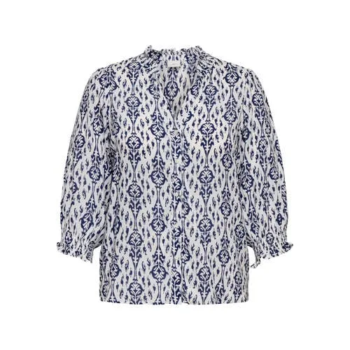 Deze geweven blauw witte dames blouse met panterprint van ONLY Carmakoma is een praktische basis voor je dagelijkse garderobe. De blouse heeft een rechtvallende pasvorm, driekwart mouwen en een V-hals met knoopsluiting. De subtiele ruches zorgen voor extra detail, terwijl de panterprint in blauw/wit voor een moderne uitstraling zorgt. Gemaakt van 100% viscose voelt de stof soepel en licht aan op de huid, geschikt voor het voorjaar.Praktische details voor elke dag Blouse met rechtvallende pasvorm Blauw/wit dessin met dierenprint en panterprint Driekwart mouwen met rechte mouwinzet V-hals met knoopsluiting aan de voorkant 100% viscose voor een zachte, soepele touch Geweven stof en ruches voor een vrouwelijke uitstraling Valt volgens de aangegeven maat Wasbaar op 30 graden, lauw strijkbaar (1 punt), drogen op lage temperatuur (1 punt) Onderdeel van de Daily collectie, geschikt voor grote matenGemakkelijk te combineren in jouw dagelijkse looksDe blouse combineer je eenvoudig met een donkere jeans of een nette broek voor naar kantoor. Door de rechtvallende vorm valt hij mooi over een broek, maar hij kan ook in de taille worden gestopt voor een meer geklede look. Geschikt voor lentedagen waarop je iets luchtigs wilt dragen dat toch gekleed oogt.ONLY Carmakoma: stijl in grote matenONLY Carmakoma is de lijn van ONLY die zich richt op mode in grote maten, met aandacht voor pasvorm en actuele trends. De collecties zijn ontworpen zodat je vertrouwde basics en trenditems makkelijk met elkaar kunt combineren. Zo bouw je stap voor stap een garderobe op met stukken die aansluiten op jouw stijl.Een blouse die je zo uit de kast pakt voor werk, een afspraak of een casual dag in de stad.