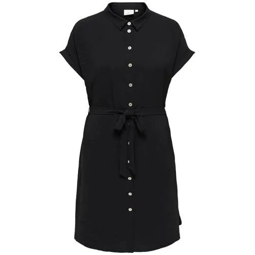 Deze zwarte blousejurk voor dames in grote maten van ONLY CARMAKOMA is een praktische basis voor elke dag. De jurk heeft een korte lengte en kapmouwen, waardoor de jurk luchtig oogt en prettig is om te dragen in het voorjaar en op warmere dagen. De klassieke kraag en de doorknoopsluiting geven het model een nette, maar toch relaxte uitstraling. De geweven stof valt soepel langs het lichaam en met de ceintuur in de taille bepaal je zelf hoeveel vorm je wilt creëren.Dagelijkse details die het verschil maken Korte jurk met blousemodel, ideaal voor de lente en zomerse dagen Klassieke kraag en volledige knoopsluiting aan de voorkant Kapmouwen voor subtiele bedekking van de schouder Effen zwarte kleur, makkelijk te combineren met sneakers of sandalen Ceintuur in de taille voor een verstelbare pasvorm Borstzak als stijlvol en praktisch detail Gemaakt van een lichte, geweven stof met een soepele touch Maatadvies: dit artikel valt normaal Onderhoud: handwas, niet strijken en niet drogen in de droogtrommelComfortabele jurk voor alledaagse momentenDeze korte blousejurk past goed in een dagelijkse garderobe. Combineer met gympen voor een casual dag, of met een nette schoen voor een werkdag op kantoor. De zwarte kleur maakt het eenvoudig om laagjes toe te voegen, zoals een dun vest of een denim jasje.ONLY CARMAKOMA voor grotere matenONLY CARMAKOMA richt zich op dames in grotere maten die moderne, draagbare mode zoeken. De pasvormen worden afgestemd op ronde vormen en bieden ruimte waar dat nodig is, met aandacht voor een actuele uitstraling. Zo wordt het eenvoudiger om outfits te vinden die goed passen bij jouw maat en stijl.Een veelzijdige zwarte jurk die moeiteloos meebeweegt met je dagelijkse plannen.