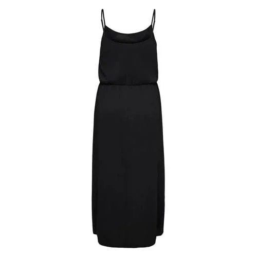 Deze zwarte katoenen midi jurk met spaghettibandjes is een basic voor zomerse dagen. De jurk valt middellang, heeft een ronde hals en geen sluiting, waardoor je hem gewoon aantrekt en klaar bent. Gemaakt van 100% katoen voelt de stof luchtig en zacht aan op de huid, geschikt voor warme temperaturen of als laagje in het tussenseizoen.Details die je elke dag draagt Midi lengte, valt ongeveer op de kuit voor een rustig silhouet Spaghettibandjes en ronde hals voor een open, zomerse bovenkant Gemaakt van 100% katoen, een soepele en ademende stof Effen zwarte kleur, goed te combineren met sandalen, sneakers of een denim jasje Zonder zakken en zonder sluiting voor een glad silhouet Onderdeel van het grote maten assortiment, ontworpen met aandacht voor pasvormVan stranddag tot stadswandelingDeze midi jurk past bij veel momenten op een dag. Draag hem op zichzelf met slippers naar het strand of park. Voor werk of een etentje combineer je de jurk eenvoudig met een lichte blazer of een opengewerkt vest en sieraden. Door de neutrale zwarte kleur wissel je met accessoires snel van casual naar meer aangekleed.ONLY CARMAKOMA: mode in grote matenONLY CARMAKOMA is de grote maten lijn van ONLY en richt zich op kleding in een ruimere maatvoering. De collecties volgen de trends uit de reguliere lijnen, maar dan met pasvormen die speciaal zijn afgestemd op rondere vormen. Zo kies je voor stijlen die geschikt zijn voor dagelijks gebruik.Een praktische zomerjurk waar je het hele seizoen plezier van hebt.