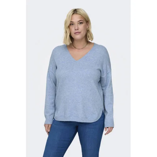 Deze ONLY CARMAKOMA trui voor dames heeft een rechtvallend design. Gemaakt van viscose met een gebreide structuur. De trui heeft lange mouwen en een V-hals. Een comfortabele keuze zonder sluiting. Perfect voor elke gelegenheid.