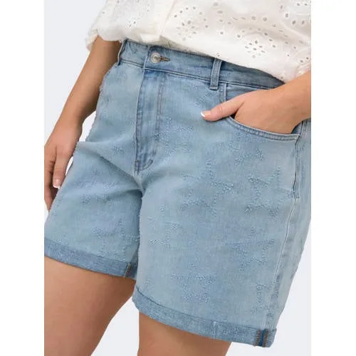 Ga voor een frisse zomerse look met deze light blue denim shorts voor dames in grote maten van ONLY CARMAKOMA. De short heeft een regular waist en regular fit, waardoor de pasvorm relaxed is zonder te strak aan te voelen. De lichte wassing past makkelijk bij je favoriete T-shirt, top of blouse en maakt dit een fijne basis voor elke dag.Vlotte denim short met speelse details Lichte denimkleur 'light blue denim' voor een zomerse uitstraling Casual model, geschikt als denim shorts en als dagelijkse short 5-pocket stijl met riemlussen, handig als je er een ceintuur bij draagt Subtiele sterrenprint en borduursels voor een speels accent Omgeslagen broekspijpen voor een ontspannen, zomerse look Regular waist en regular pasvorm, dit artikel valt normaal Gemaakt van 50% katoen, 18% viscose en 2% elastaan voor een zachte touch en lichte stretch Rits- en knoopsluiting voor een klassieke jeanslook Wasbaar op 40 graden en warm strijkbaar (2 punten), niet in de droogtrommelIdeaal voor dagelijks zomergebruikDeze denim short komt uit de daily collectie en is ontworpen voor zomerse dagen. Draag hem met een luchtige top en sandalen voor een dagje stad of combineer met sneakers en een T-shirt voor een casual vrije dag. De lichte stretch zorgt dat je je gemakkelijk kunt bewegen.ONLY CARMAKOMA: denim met een goede pasvormONLY CARMAKOMA richt zich op dames met grote maten die houden van een modische, toegankelijke stijl. De focus ligt op pasvormen die prettig aanvoelen in het dagelijks leven, met herkenbare denimdetails en trends die aansluiten op het seizoen. Zo voeg je eenvoudig een moderne short toe aan je garderobe.Een comfortabele basisshort voor zonnige dagen, waar je vaak naar zult grijpen.