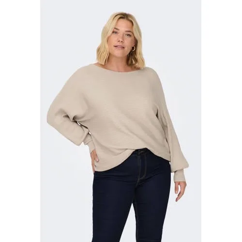 ONLY CARMAKOMA ribgebreide trui CARNEW beige