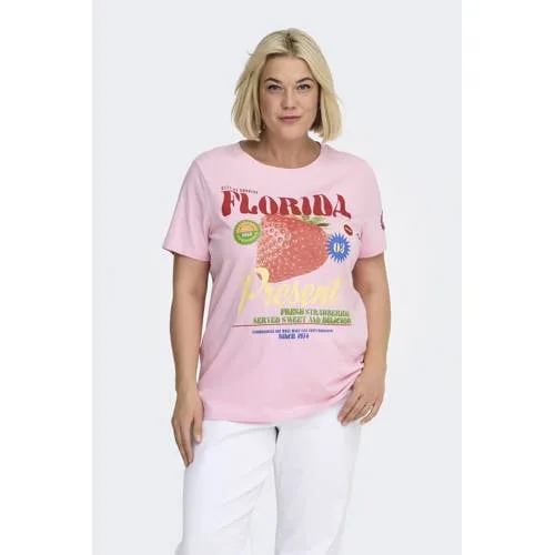 ONLY CARMAKOMA T-shirt met backprint roze Prijzen